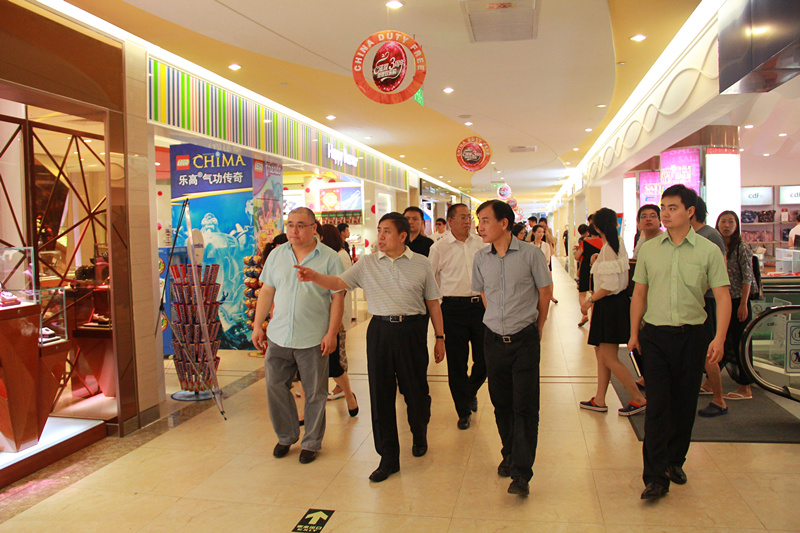 Chairman Wang Weimin and the entourage came to Sanya Duty Free Store firstly, where they visited counters for perfumes & cosmetics, watches, boutique products and bags & cases in the duty free zone and special local products of Hainan in the duty zone, asking about the sales status to deeply look into the competitiveness of prices of duty free products after the baggage delivery taxes paid and latest trends of offshore duty free policy. After listening to the report on recent business circumstances by Sanya Duty Free Store, Chairman Wang Weimin spoke highly of the work of the store.