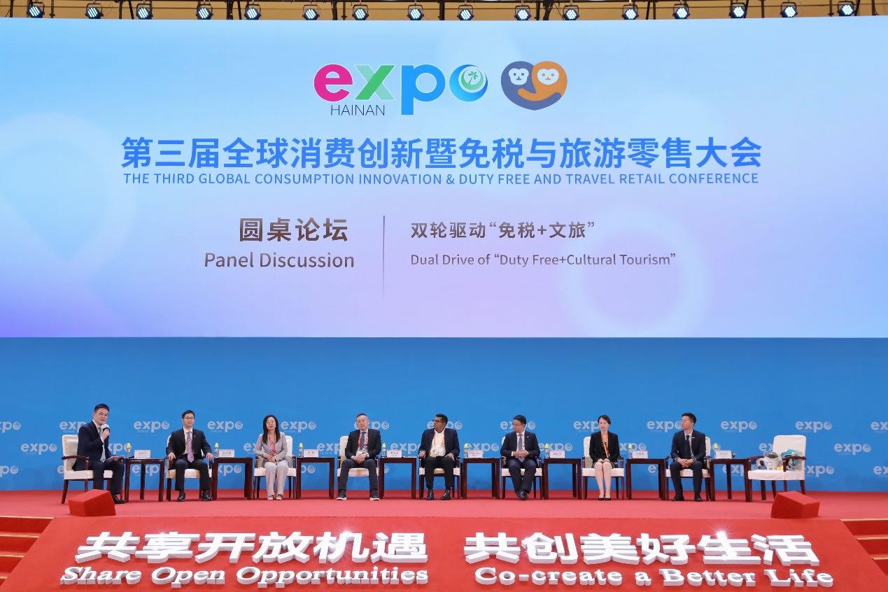 Later in the conference, CDFG Executive Vice General Manager Chang Zhujun (Luke Chang) – pictured left below – hosted a panel discussion on ‘Duty Free + Cultural Tourism’.